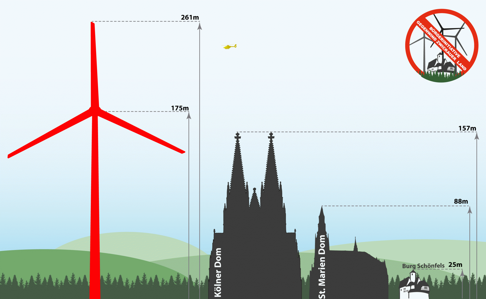 Wir sind eine Bürgerinitiative, die sich für den vernünftigen Ausbau von erneuerbaren Energien und somit GEGEN die Errichtung von 8 gigantischen Windenergieanlagen auf dem Gebiet des Schönfelser Wald einsetzt. Wir repräsentieren alle, die gegen den Plan einzelner Profiteure der Windenergieanlagen im Zwickauer Land sind. Um unsere Heimat, Gesundheit und Natur zu schützen, engagieren wir uns gezielt in unserer Region.